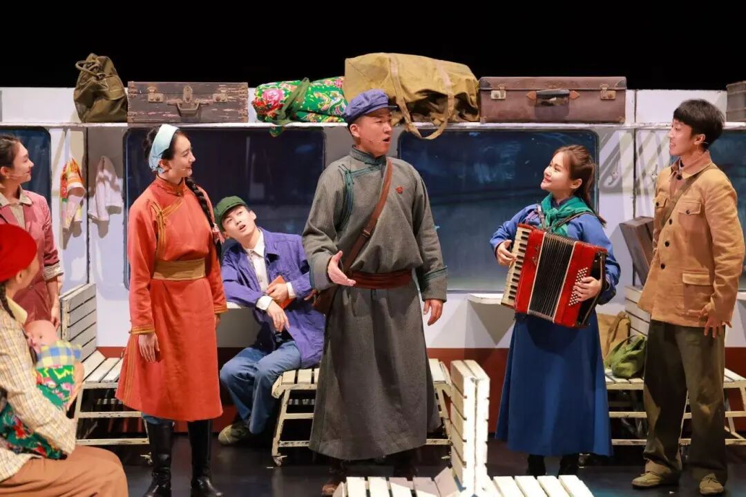 汽笛长鸣,像一把钥匙,轻轻拧开了时光的门锁——一列1965年的绿皮火车披着旧日风尘缓缓驶入,车厢里坐着的,正是第一次奔赴全国巡演的乌兰牧骑队员。车轮与钢轨的碰撞声,化作草原最炽烈的鼓点,载他们驶向远方,也带我们穿越六十载光阴,回望那支“红色文艺轻骑兵”如何用马鞍与琴弦丈量大地,用歌声与舞步抚慰人心。