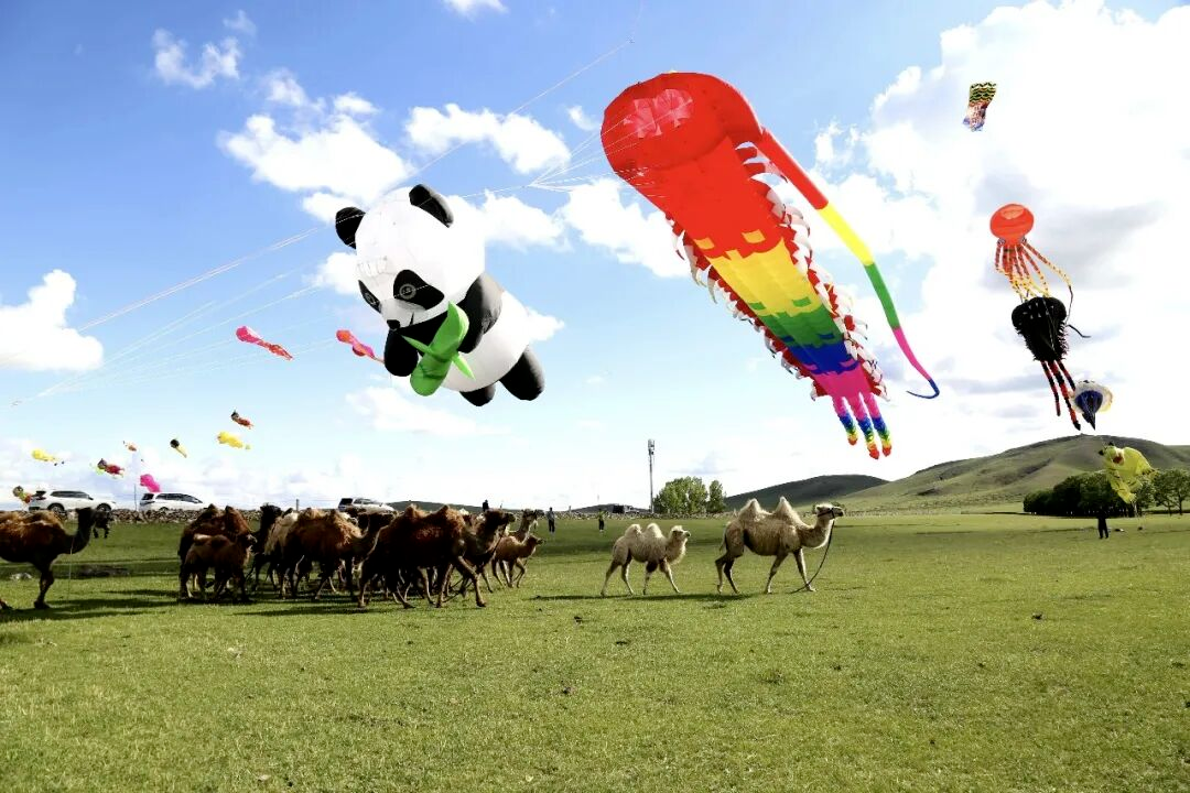湖畔乘风,风筝竞舞,将草原湖光与纸鸢美景相融,邂逅别样春日风光。