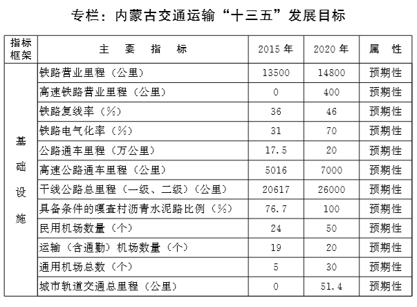 内蒙古自治区“十三五”时期综合交通运输发展规划