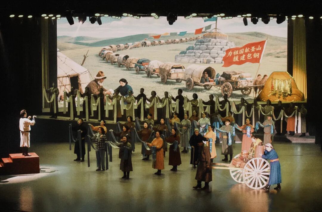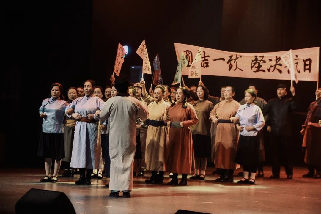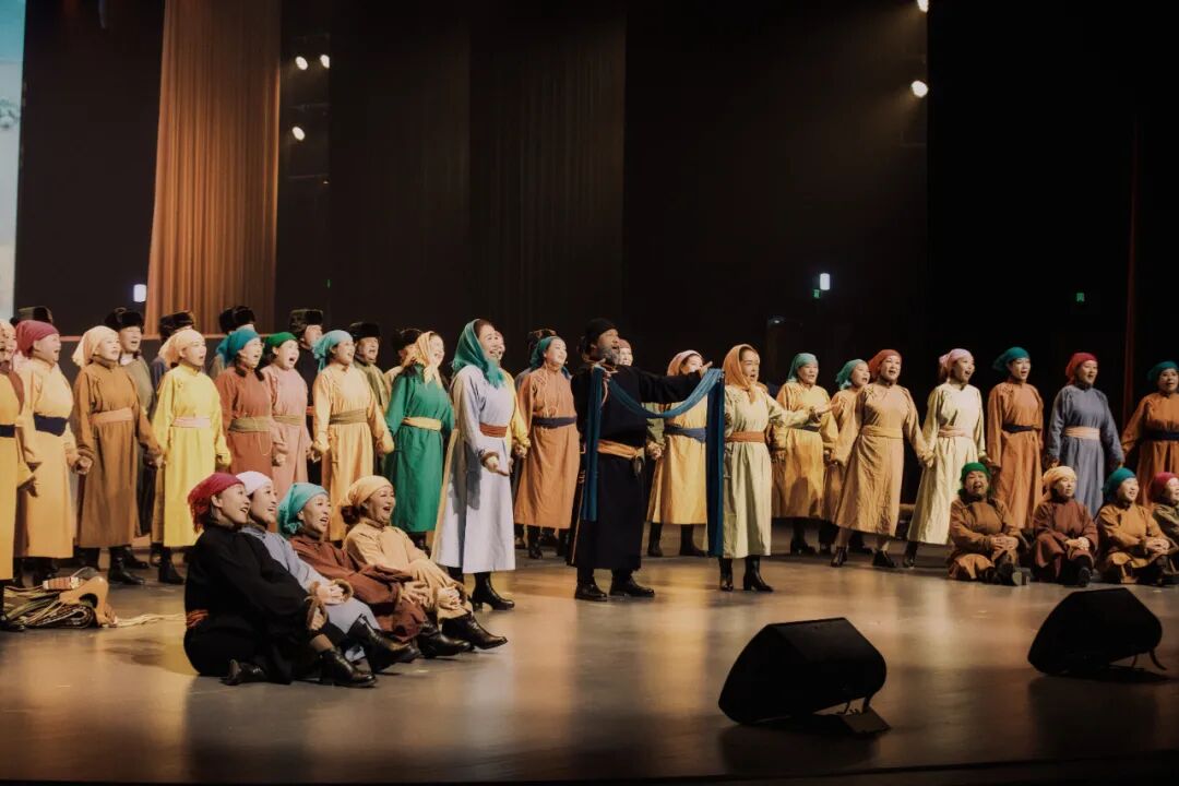 这部由达茂旗委统战部牵头,达茂旗委宣传部、达茂旗文旅局协同打造的力作,绝非普通演出:70余名演职人员全是“达茂本地人”,从二十岁的青春力量到七十岁的银发长者,有乌兰牧骑演员,也有基层群众,他们用非专业的身份,演绎最专业的“家乡情”。在这里,你能看到跨越时空的“达茂记忆”:从敖伦苏木古城的千年沧桑,到百灵庙抗日暴动的热血激昂;从“齐心协力建包钢”的时代回响,到草原英雄小姐妹的纯真坚守,再到戍边卫士阿迪雅的执着守护。音乐、舞蹈、诗歌三重艺术碰撞,不是生硬的历史复述,而是用“道尔吉老人”的视角,串联起草原人民与国家的深厚羁绊,让每一段故事都有温度,每一个符号都有力量。