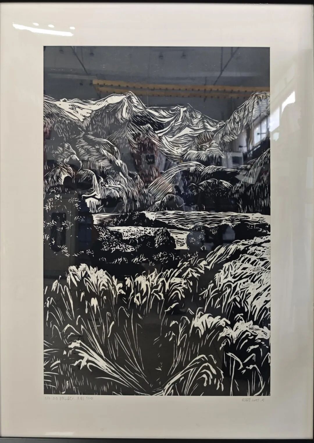 本次展览汇聚了内蒙古科技大学美术学系学生精心创作的40余幅版画作品,以艺术为笔,以文化为墨,多角度勾勒北疆文化的独特风貌,是一次校地合作的积极探索。本次展览展出的每一幅作品都是学子对北疆文化的深刻感悟与创新表达,承载着他们对这片土地的热爱与思考,不仅是对艺术技法的锤炼,更是情感的投射与精神的扎根。学子们将课堂所学扎根于北疆沃土,把对故土的深情、对文化的敬畏,凝结为黑白交织的意象、色彩流淌的情感。他们以年轻而真诚的艺术视角,诠释着“何谓北疆”。