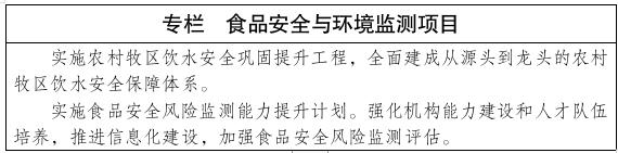 建立健全环境监测预警体系,开展公共场所健康危害因素监测和空气污染对人群健康影响监测,提高环境卫生监测公共服务能力。完善农村牧区饮水监测,严格医疗废物管理,因地制宜建立完善医疗废物收集转运体系。推进食品安全信用体系建设,完善食品安全信息公开制度。加强互联网食品经营治理。