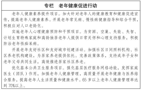 坚持以人民为中心的发展思想,强化政府、社会和个人的健康责任,健全预防为主的制度体系,完善健康促进ld体育中国官方网站,全方位干预健康影响因素,推动从以治病为中心向以人民健康为中心转变。加快推进健康知识普及、合理膳食、全民健身、控烟、心理健康促进、健康环境促进、妇幼健康促进、中小学健康促进、职业健康保护、老年健康促进、心脑血管疾病防治、癌症防治、慢性呼吸系统疾病防治、糖尿病防治、传染病及地方病防控、中医药(蒙医药)振兴、全民健康信息化等17个专项行动,引导群众建立正确健康观,加强早期干预,形成有利于健康的生活方式、生态环境和社会环境,延长健康寿命。