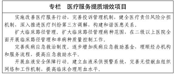 改进医疗服务流程,推进预约诊疗服务,创新便民措施,优化诊区设施布局,营造温馨就医环境。合理配置诊疗资源,推广日间手术,加强急诊力量,畅通绿色急诊通道。强化医疗质量控制管理,规范医疗行为,促进合理医疗检查,推行医学检查结果互认。加强监管规制建设,规范医疗机构、医师、护士电子化注册管理。提高医疗护理水平,扩大优质护理服务覆盖面,二级及以上医院100%的病房开展优质护理服务。继续实施城乡医院对口支援,实施京蒙对口支援项目,促进优质医疗资源合理流动和服务能力提升。