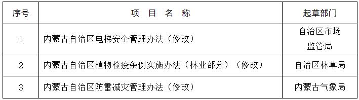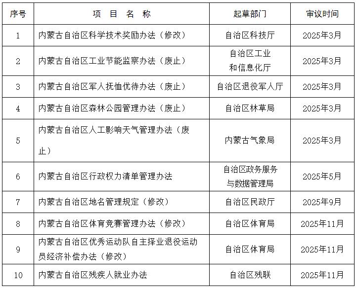 内蒙古自治区2025年政府规章立法计划审议项目(10件)