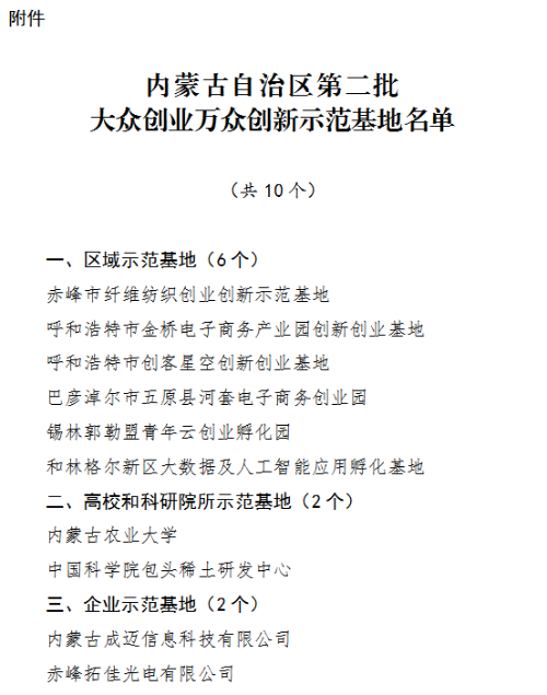 附件:内蒙古自治区第二批大众创业万众创新示范基地名单