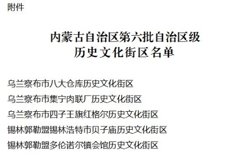 附件:内蒙古自治区第六批自治区级历史文化街区名单