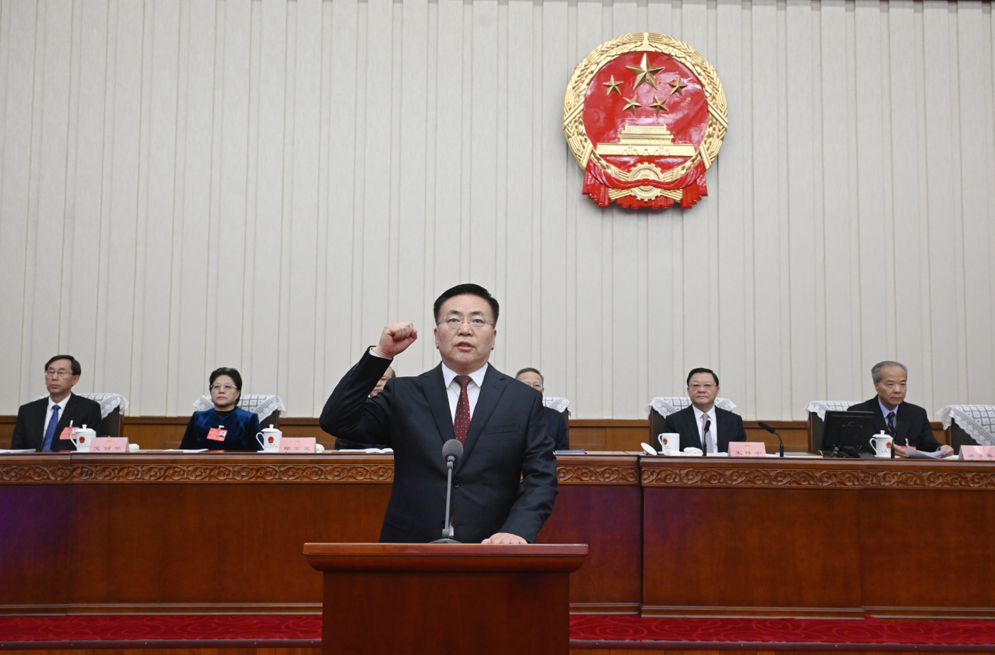 包钢向宪法庄严宣誓并作表态发言。包钢表示,一定矢志不渝沿着习近平总书记指引的方向笃定前行,旗帜鲜明讲政治,实干担当促发展,用心用情惠民生,在建设“两个屏障”、“两个基地”、“一个桥头堡”上展现新作为,呵护好“模范自治区”的崇高荣誉。一定依法依规尽职责,清正廉洁守底线,自觉接受人大及其常委会监督,深入推进党风廉政建设和反腐败斗争,在自治区党委带领下,与政府系统的同志们一道,勠力同心、倾情奉献,奋力书写中国式现代化内蒙古新篇章。