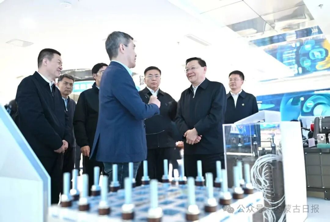 10月29日,自治区党委书记王伟中来到新能源研究院,与科研人员深入交流,了解科技创新平台建设、科研布局、成果转化、产业孵化等情况。草原云·内蒙古新闻网记者 马建兵 摄