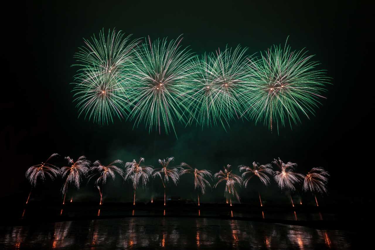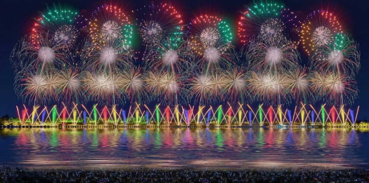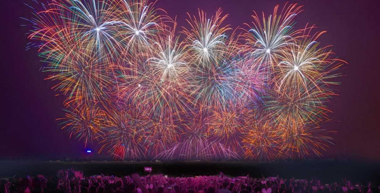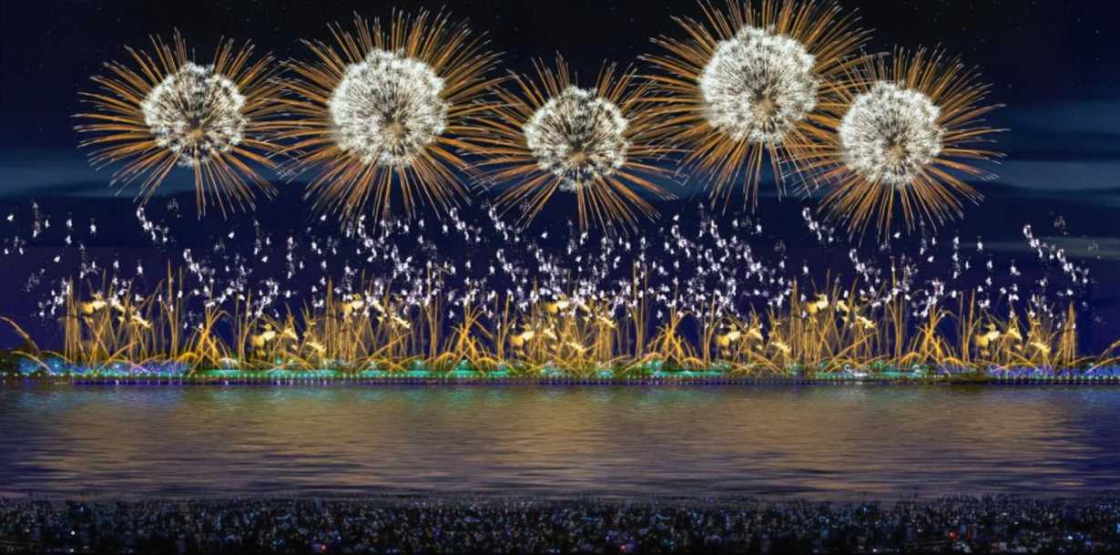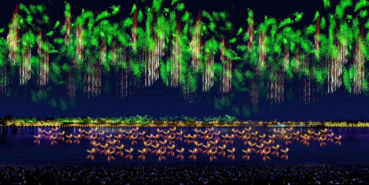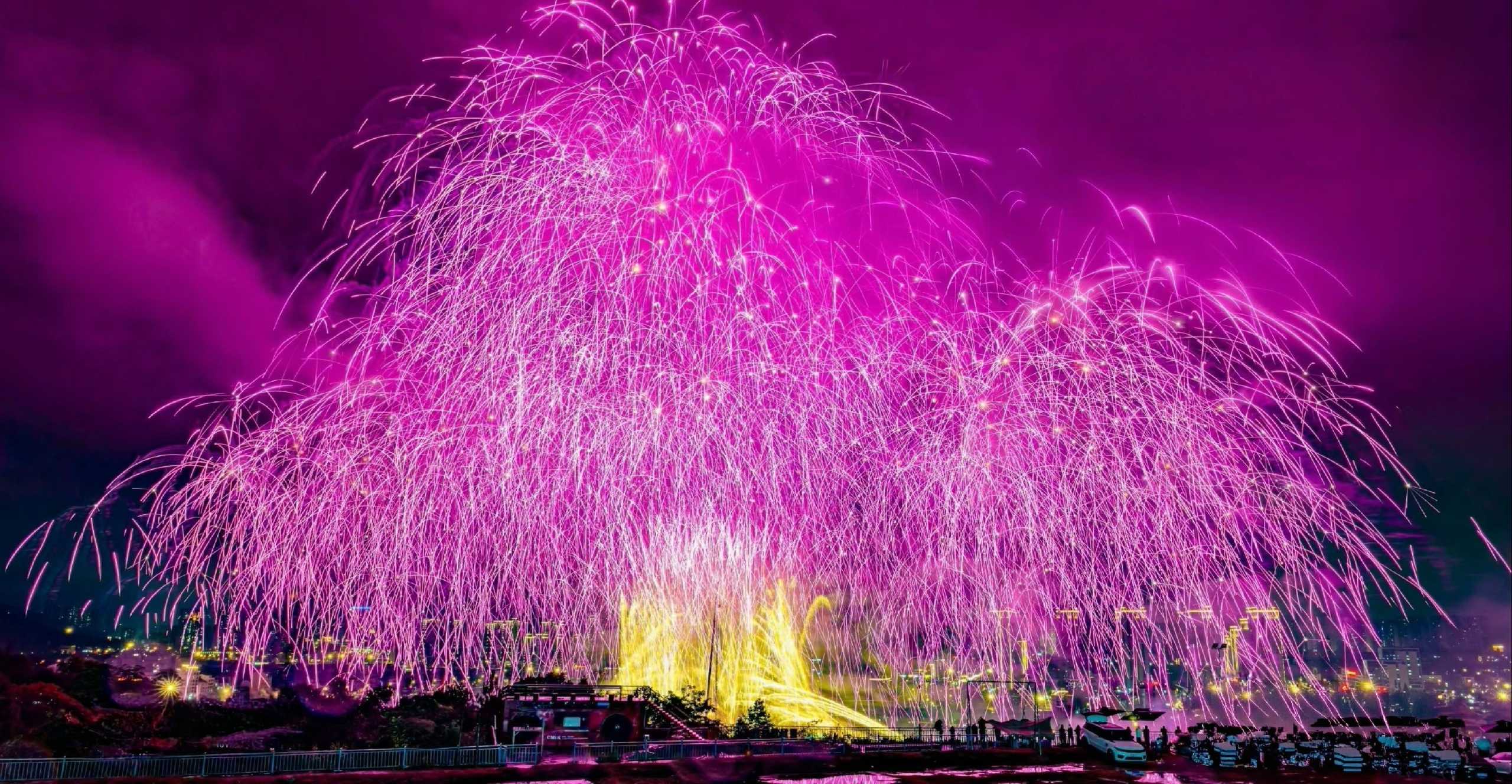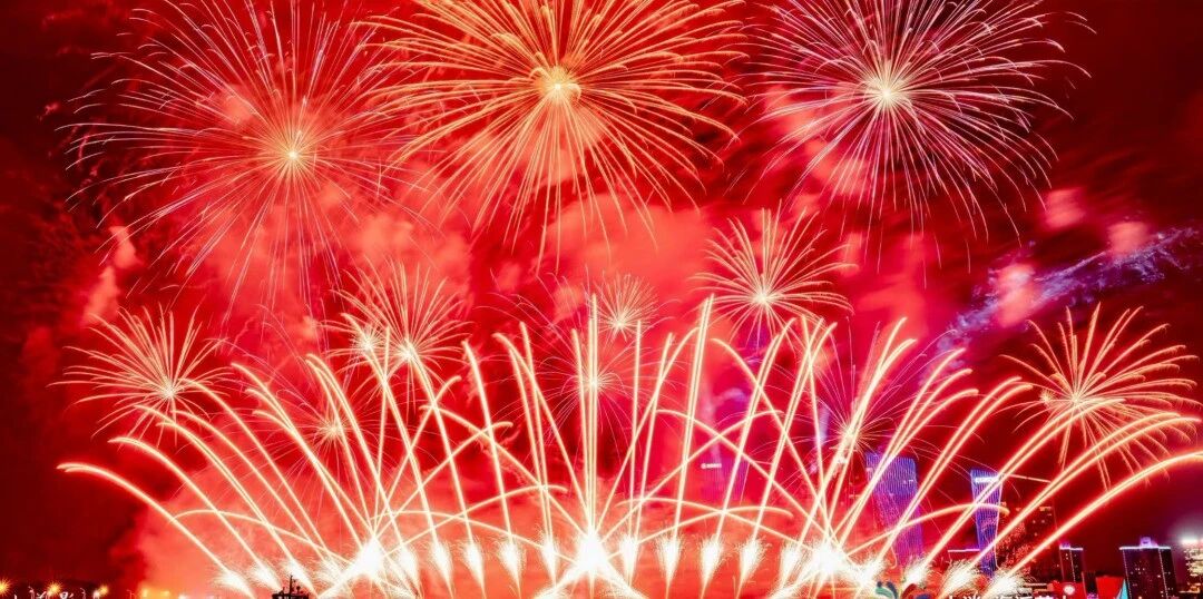 璀璨焰火映星河,流光溢彩闹元宵。共赴一场烟花之约,感受城市蓬勃发展脉动。