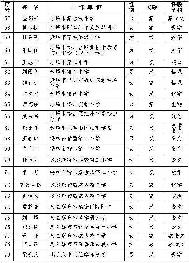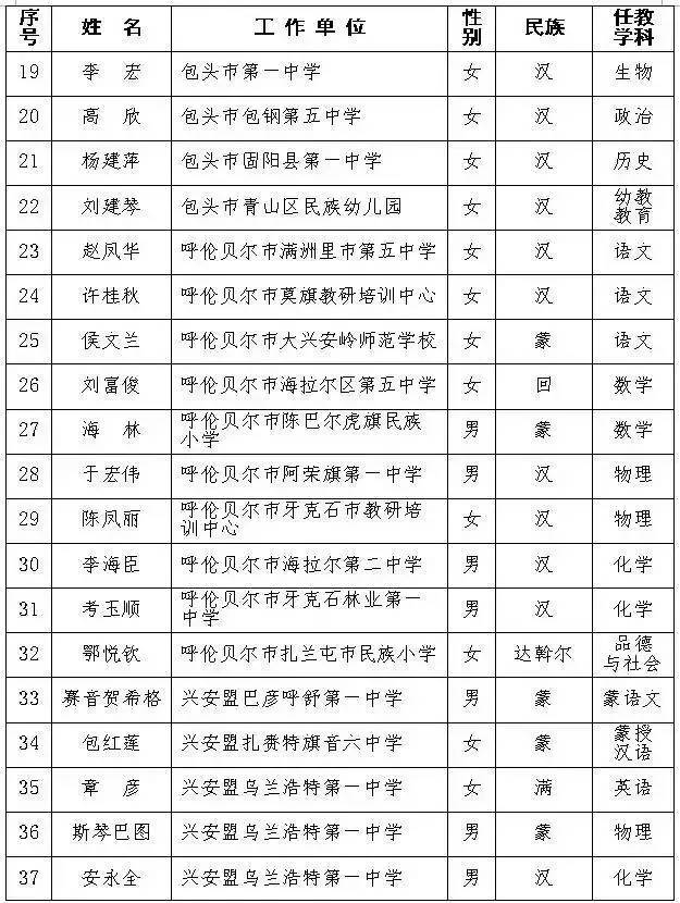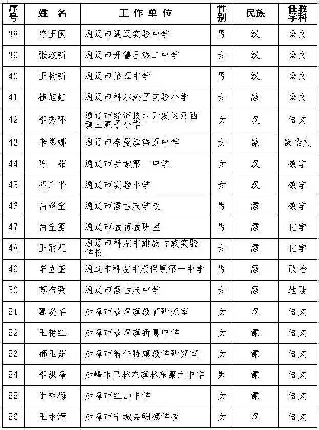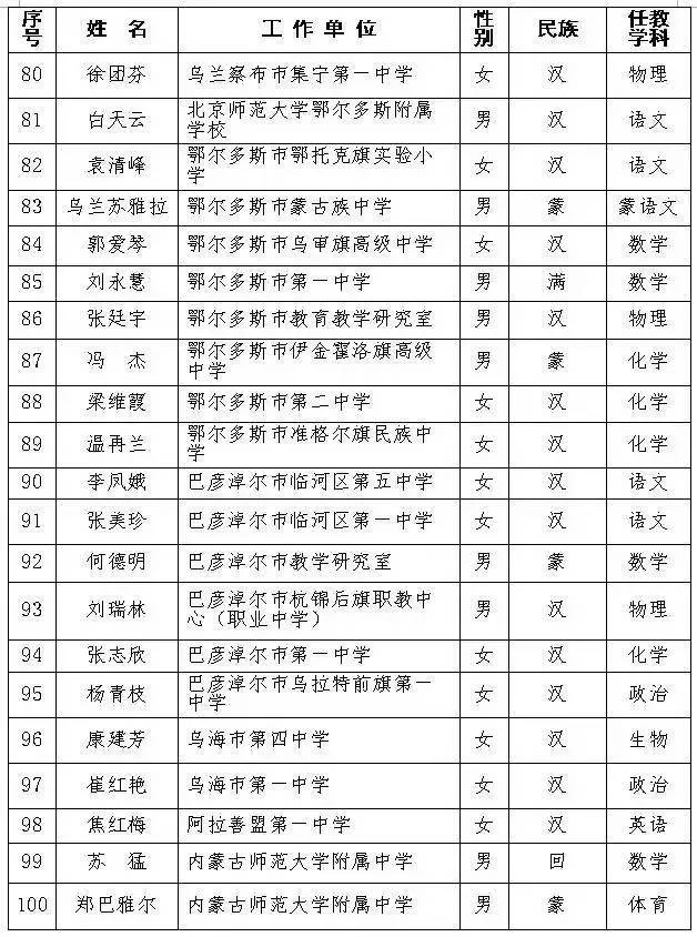 自治区第十批中小学特级教师名单