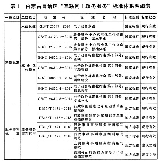 通过梳理自治区“互联网+政务服务”标准明细表,对自治区急需制定的地方标准进行汇总,形成表3。