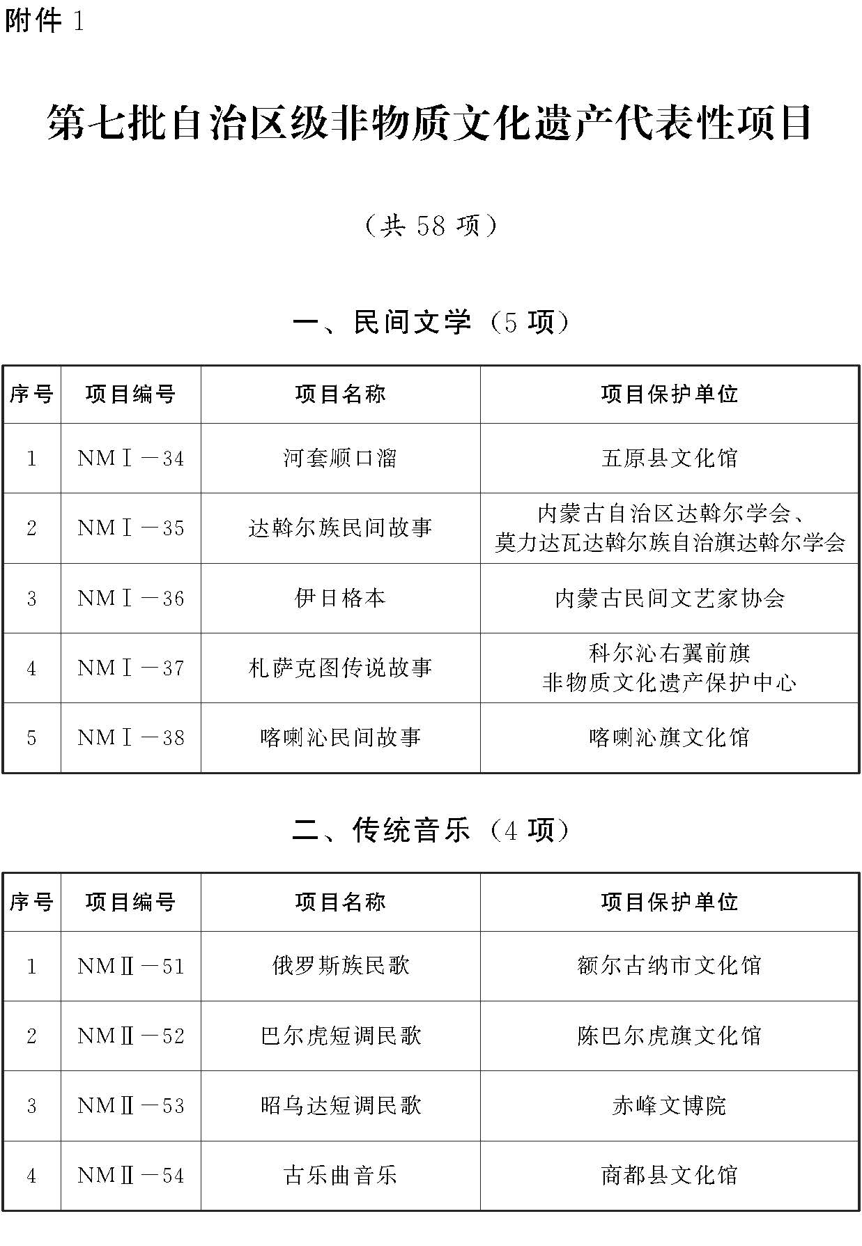 附件:1.第七批自治区级非物质文化遗产代表性项目(共58项)